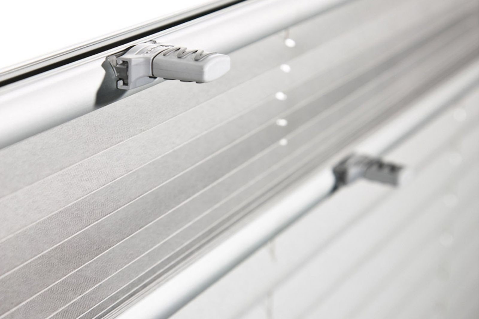 - Samohamujący mechanizm sterujący, pozwala ustawić żaluzję plisowaną na dowolnej wysokości,